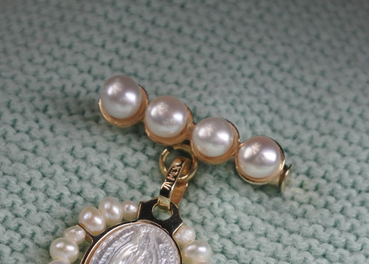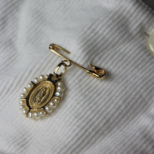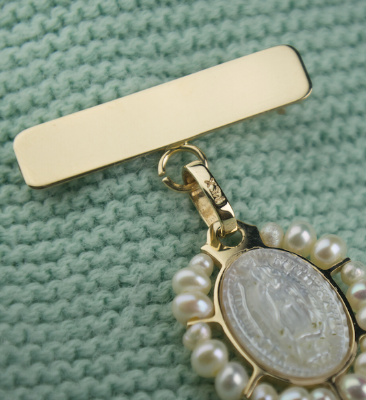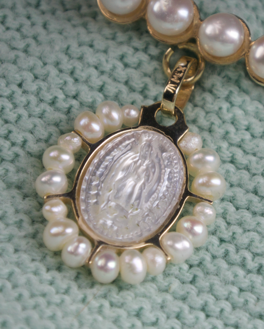 Medalla Oval Virgen de Guadalupe Madre Perla con Perlas