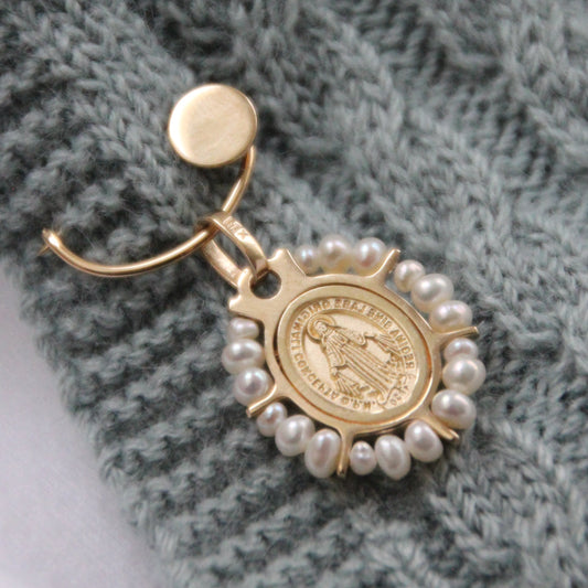 Medalla Redonda Virgen de Guadalupe con Mini Perlas