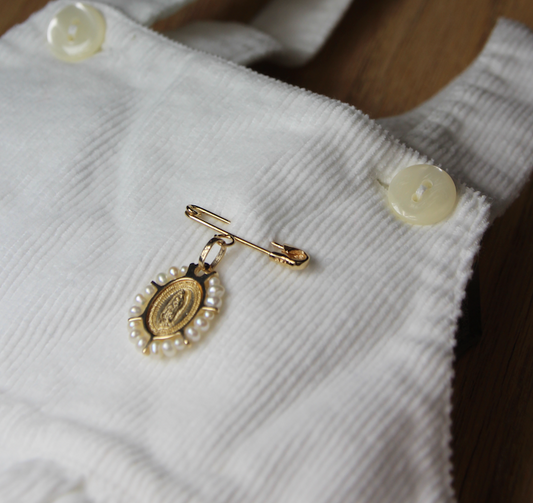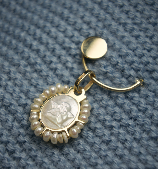 Medalla Oval Ángel de la Guarda Madre Perla con Perlas
