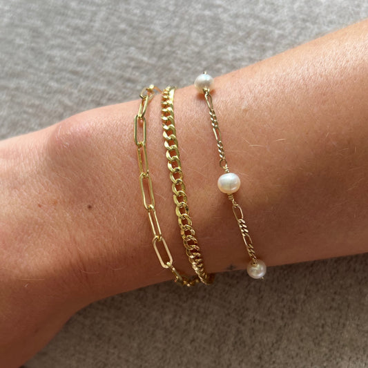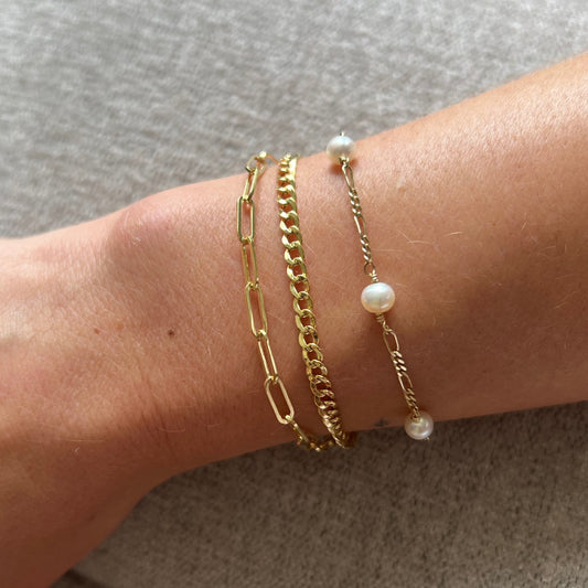 Pulsera Cadena Oro Amarillo con Perlas